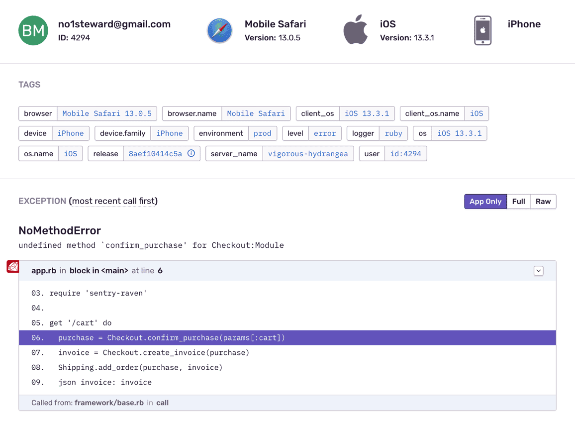 Actionable insights to resolve Sidekiq performance bottlenecks and errors. Improve your Sidekiq monitoring workflow with a full view of releases so you can mark errors as resolved and prioritize live issues.
