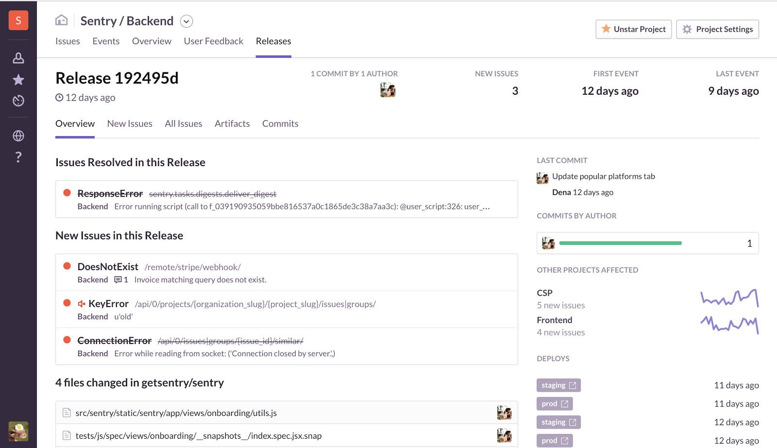 Link production errors to the commit that caused the error in the first place and give your team the context they need (beyond the enigmatic ValueError title).